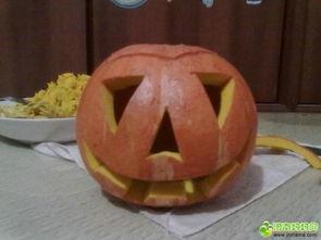 1. 挖空南瓜:用勺子将南瓜内部的种子和果肉挖出,注意不要挖得太深,以免南瓜灯容易破碎。